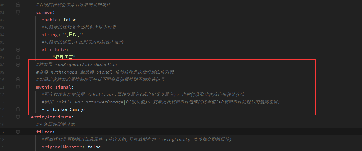 attributes.yml中mythic-signal配置项,可在技能处理通过占位符获取属性触发值 - 更新记录尾部附件:图2