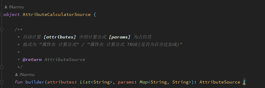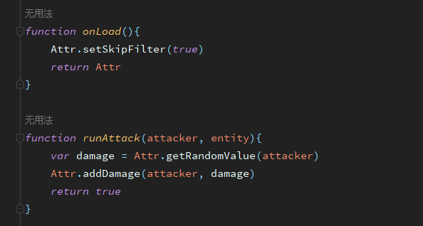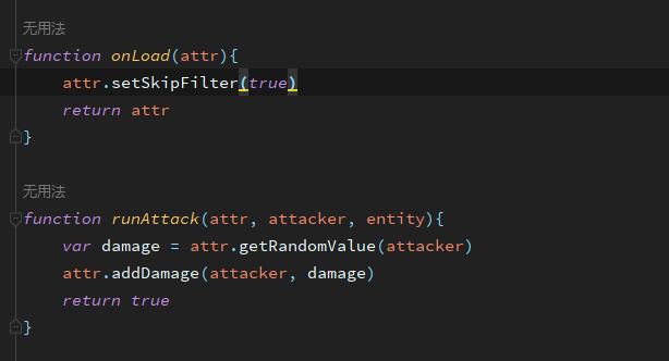 AttrScriptUtils.kt类中新增相关调用方法,可在属性脚本中调用 Utils.hasEntityCooling(name, entity) 目标是否冷却中Utils.hasEntityCooling(name, entity, time) 目标是否冷却中,未冷却则进入冷却Utils.resetEntityCooling(name, entity) 重置目标冷却